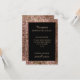 Una elegante tarjeta de recepción de boda moderna con brillo en rosa dorado y negro. Esta tarjeta de recepción es parte de un conjunto completo de invitaciones de boda.