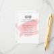 Una tarjeta moderna de recepción de boda presenta un fondo de lavado de acuarela rosa.