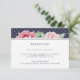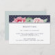 Diseñado para coordinar con nuestras invitaciones de boda y evento de la colección Antigue Peony, esta tarjeta de recepción moderna vintage presenta flores de peonía en acuarela de color rosa claro que asoman desde detrás de un panel frontal en blanco y azul medianoche. Un patrón de fondo de diamantes punteados en blanco sobre azul medianoche añade dramatismo y atractivo vintage. Agregue los detalles de su recepción, incluyendo horario, lugar y cualquier información adicional como estacionamiento con valet o servicio de transporte.