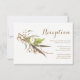 Elegante tarjeta de recepción de boda rústica con corona floral de algodón en acuarela y plumas de faisán. Coordina con el conjunto de boda de algodón rústico.