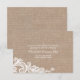 Tarjeta de recepción de boda de arpillera y encaje