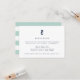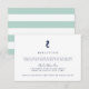 Diseñada para coordinar con nuestras colecciones de invitaciones de boda de mezcla náutica, esta tarjeta de recepción de boda de estilo costero en menta y azul marino presenta una pequeña ilustración de caballito de mar en la parte superior con elegante letra azul marino y un respaldo a rayas horizontales verde y blanco. Agregue los detalles de su recepción como horario, lugar y dirección utilizando los campos proporcionados.
