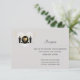 Tarjeta de recepción con un diseño de dos novios, parados a ambos lados de un corazón dorado, todo sobre un fondo gris. Este artículo es parte de un conjunto de boda que incluye una invitación de boda, tarjeta de respuesta y más. (Los elementos dorados en el conjunto son de oro falso y no de lámina de oro.)