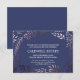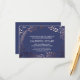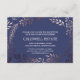 Esta tarjeta de recepción de boda elegante rosa dorado y azul marino es perfecta para una boda con clase. El diseño presenta un marco de hojas de color rosa suave impresionante sobre un fondo azul oscuro. Personalice esta tarjeta de detalle con la información de su recepción e incluya también la dirección de su sitio web de boda.