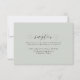 Con tipografía clásica y elegante sobre un fondo suave verde salvia, esta tarjeta de recepción establece el tono para una boda atemporal. Perfecta para eventos formales de etiqueta negra. Está diseñada para coordinar con la colección de boda Simple Elegant de Lea Delaveris Design.