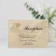 Tarjeta de recepción de boda en playa o destino de playa Arena, corazón y estrella de mar
