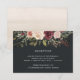 Diseñada para coordinar con nuestra colección de boda floral acuarela Moonlight Garden, esta elegante tarjeta de recepción botánica presenta un spray de flores de mum y rosa pintadas a la acuarela en ricos tonos otoñales de marsala, ciruela borgoña, rosa rubor y crema, coronando los detalles de su recepción de boda en blanco. Una elegante tarjeta de inclusión para invitaciones de boda en negro elegante para bodas de otoño o invierno.