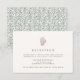 ¡Que continúe la fiesta! Las tarjetas de inserción de invitación a la recepción de boda en una paleta de colores de país de vinos de marfil, ciruela cabernet y verde cazador presentan una ilustración de racimo de uvas de estilo grabado vintage en la parte superior, con el horario de recepción, lugar y detalles adicionales debajo en gris carbón. Las tarjetas se revierten a un patrón de vid y brote botánico en verde cazador y crema coincidentes.
