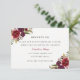 Tarjeta de recepción de boda floral roja de Borgoñ