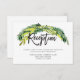 Tarjeta de recepción de boda floral rústica boho diseñada por Birch + Blossom. Hermosas hojas de acuarela rodean la parte frontal de la tarjeta creando un marco de estilo rústico. El texto es un buen equilibrio entre letra script y moderna. En el reverso de la invitación hay un hermoso semicírculo de las mismas hojas con las iniciales de la novia y el novio. No te olvides de revisar otros artículos de "Floral Rústica Boho" en la colección para crear un tema coherente para tu boda.