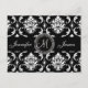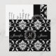 Tarjetas de recepción con un diseño de monograma elegante y audaz con patrón de damasco negro y blanco que puedes insertar en tu paquete de invitaciones de boda. Personaliza con los detalles de tu recepción de boda e información personal. Elke Clarke © Para una tarjeta de invitación de boda de 5 x 7 pulgadas o más grande. Contacta con luxuryweddinginvitations@gmail.com para obtener ayuda con otras combinaciones de colores.