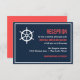 Tarjeta de recepción de boda náutica azul marino y