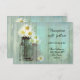 Este delicado frasco de albañil de color verde menta y la tarjeta de recepción de boda de margarita es parte de un conjunto completo.