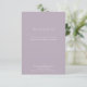 Esta tarjeta de recepción de boda simple, minimalista y moderna presenta letras modernas en blanco con fondo lila / púrpura polvoriento. Puedes encontrar productos coincidentes en mi tienda.