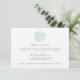 Diseñada para coordinar con nuestras colecciones de invitaciones de boda Vintage Tropics, esta tarjeta de recepción de boda con estilo isleño presenta una hoja de monstera de estilo vintage en verde cristal de mar translúcido con letras elegantes en gris. Agregue los detalles de su recepción, como horario, lugar y cualquier información adicional utilizando los campos proporcionados.