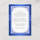 Esta caja de recepción o tarjeta de inserción de la boda floral azul cobalto o azul real y blanca tiene una cinta azul IMPRESIONADA y un arco con un par de joyas de diamante IMPRESIONADAS y un purpurina azul FAUX se unió a los corazones que coinciden con la invitación a la boda que se muestra a continuación. También puede personalizar que sea una tarjeta de direcciones, una tarjeta de registro de regalos, una tarjeta de pozos de deseos, una tarjeta de alojamiento, o un sitio web del boda u otra tarjeta de información cambiando el texto del personalizable. Si hay otros elementos coincidentes que necesite, envíe su solicitud a niteowlstudio@gmail.com.