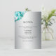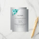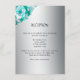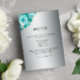 Una elegante tarjeta de recepción de bodas plateadas y acuáticas, ofrece todos los detalles importantes que sus bodas necesitarán conocer. El diseño en sí mismo presenta una temática muy lujosa de plata y agua, con un bonito ramo de agua y rosas blancas en la esquina superior izquierda. Todos los detalles se pueden personalizar muy fácilmente para que se adapten a su propia información. En el reverso de la tarjeta hay más rosas acuáticos, y la opción de incluir también los detalles del sitio web de su boda si es necesario (si no, deje esta línea en blanco en las opciones personalizadas).