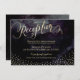 Diseño de caligrafía con letras a mano doradas y confeti de puntos dorados sobre fondo acuarela negro oscuro de noche, efecto de brillo metálico dorado falso, moderno, chic, limpio y elegante, perfecto para boda vintage o boda de invierno por la noche. Personaliza tu propia tarjeta de recepción para tu conjunto de invitaciones de boda. Ver todas las piezas coincidentes en la colección a continuación.