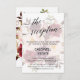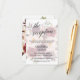 Esta tarjeta de recepción de caligrafía floral desvanecida elegante es perfecta para una boda de otoño. El diseño presenta tipografía romántica y caprichosa superpuesta a un hermoso ramo de flores rosadas, marsala y borgoña. Personalice esta tarjeta de detalle con la información de su recepción e incluya también la dirección de su sitio web de boda.