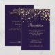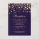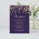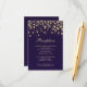 Tarjeta plana de recepción de boda con confeti de efecto dorado sobre fondo violeta
