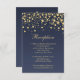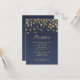 Tarjeta plana de recepción de boda con confeti de efecto dorado sobre fondo gris azulado