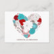 Tarjeta de Recepción de Boda con Corazón Floral Caprichoso Tiffany Azul y Rojo
