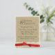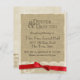 Tarjeta de recepción de encaje antiguo y arpillera con un lazo rojo para complementar las invitaciones. Agregue direcciones en la parte posterior de esta tarjeta o elimine el texto adicional si no se desea. Todas las partes de esta invitación son un diseño impreso.