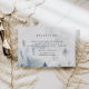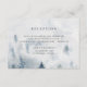 Diseñada para coordinar con nuestra colección de bodas Winter Reverie, esta elegante tarjeta de recepción de invierno presenta una escena de bosque nevado con árboles de pino en acuarela en azul y gris. Personalice con los detalles de la recepción de su boda, incluyendo horario, lugar y dirección, en tipografía clásica negro fuera.