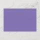 Capture la romance con esta encantadora tarjeta de respuesta de recepción que presenta florecimientos de acuarela exuberantes en tonos complementarios de púrpura y lavanda resaltados contra un fondo blanco cremoso. El dorso del RSVP incluye un fondo sólido púrpura coordinado. Productos coincidentes que pueden gustarle.... Tags: púrpura, flores, florales, floral, respuesta de boda, acuarela