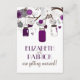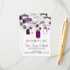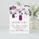 Ilustraciones caprichosas de frascos mason morados y cuerdas de corazones colgando de un árbol con dos pájaros del amor rodeados de una variedad de flores. Es perfecto para bodas de verano, primavera y al aire libre.