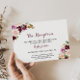 Esta tarjeta de recepción de bodas con flores de color burdeos verde es perfecta para un boda rústico. El diseño presenta elegantes ramos de flores verdes, ruidosas, violetas, rojas y burdeos, inspiradores de la belleza natural.