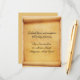 Hermosa tarjeta de recepción con la apariencia de un pergamino con estampado floral desvanecido. (Se imprime plana y no contiene adornos en relieve). Papelería a juego disponible en la tienda.