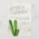 Agregue los detalles de su recepción a sus invitaciones de boda con esta tarjeta de detalles que coincide con el conjunto de "Suculentas del Desierto" en el camino de color de piedra. Un cactus de acuarela en la parte inferior izquierda complementa las suculentas utilizadas en otros elementos de este conjunto inspirado en Palm Springs.