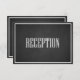 Esta recepción de boda moderna y antigua presenta tipografía moderna blanca y tipografía caligráfica en pizarra con bordes blancos. Esta es una parte de un conjunto de invitaciones de boda.