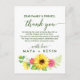 Este girasol de verano gracias a la tarjeta de recepción es perfecto para un boda de primavera o verano. El diseño presenta una vegetación floral con girasoles amarillos brillantes y flores de gerbera rosa. Coloque estas tarjetas en la mesa de cada uno de sus invitados en la recepción de su boda. Personaliza la tarjeta con tus nombres y un mensaje especial de agradecimiento.