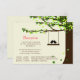 Tarjeta de recepción del árbol de roble de pájaros de amor corazones que caen