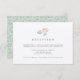 Diseñada para coordinar con nuestra colección de invitaciones de boda Estanque de Koi, esta tarjeta de recepción acuática chic presenta una pequeña ilustración de flor de loto o nenúfar en la parte superior con los detalles de la recepción, horario, lugar y dirección en suave carbón. Las tarjetas de inclusión de la invitación se revierten a un patrón de pez koi en verde suave tono sobre tono para un aspecto zen moderno.