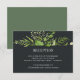 Diseñada para coordinar con nuestra colección de bodas Jardín de Medianoche, esta tarjeta de recepción con un toque fresco de vegetación botánica presenta un ramo de vegetación que corona los detalles de la recepción, horario, lugar y dirección en blanco sobre un elegante fondo oscuro.