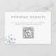 Una tarjeta de gabinete del sitio web boda con flores de color azul claro y código QR editable.