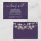 Este elegante boda morado que desea una buena tarjeta de gabinete puede ser personalizado con su mensaje especial y nombres y luces de cadena de bonito al revés. Diseñado por Thisisnotme©
