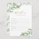 Tarjeta de Deseos de Flores Blancas y Verde al Agua para la Novia y Novio | Pide a los invitados que compartan sus dulces deseos para la novia y el novio con esta tarjeta floral. Cuenta con ilustraciones de acuarela y patrón de follaje y flores blancas. Esta invitación floral es perfecta para bodas de primavera y duchas de novia.