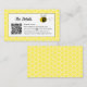Estas dulces tarjetas de detalle de abejas son perfectas para cualquiera que tenga una ducha de bebé este año. El diseño presenta unas hermosas abejas con un fondo de abeja amarilla y un texto de plantilla fácil de personalizar. Simplemente incluya estas tarjetas de detalle cuando envíe sus invitaciones a la ducha de bebé coincidentes, sus huéspedes podrán escanear el código QR y visitar su sitio web para obtener más información sobre la ducha. Los elementos coincidentes se encuentran en la colección siguiente...