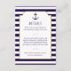 Tarjeta De Recepción Detalle de boda de ancla de franja blanca y marina