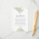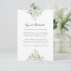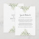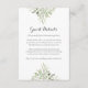 Con delicadas hojas de follaje verde en acuarela, esta elegante tarjeta de información para invitados con temática botánica se puede personalizar con la información de tus invitados. Diseñado por Thisisnotme©