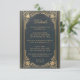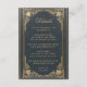 Tarjeta De Recepción Detalles de Boda Azul Elegante - Letra Dorada Vint