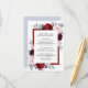 Tarjeta de detalles de boda floral temática de pizarra rosa polvorienta de Borgoña con elegante ramo de capullos de flores de borgoña, vino, azul polvoriento, rosas rosadas y peonía y hojas de eucalipto verde polvorientas y marco geométrico neutro con brillo falso rojo. Por favor, contácteme para cualquier ayuda en personalización o si necesita algún otro producto con este diseño