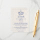 Diseño de boda retro caprichoso dibujado a mano en azul marino polvoriento con un candelabro combinado con fuentes serifas vintage y letras a mano sobre el fondo de papel vintage.