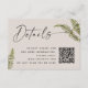 Comparte toda tu información importante con estilo con esta elegante tarjeta de detalles de boda botánicos, que presenta vegetación de helechos pintada a mano sobre un fondo suave y cálido de tono taupe. El diseño minimalista con letra moderna ofrece una apariencia limpia y atemporal - perfecta para bodas botánicas, boho o rústicas chic. Incluye espacio para tu sitio web de boda, enlace de RSVP o código QR, lo que la hace hermosa y funcional.