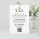 Diseño simple y minimalista con código QR en la parte delantera. Elegante madera de granero desgastada y ligera en la parte trasera. Esta tarjeta versátil puede complementar una variedad de diseños y estilos de boda, pero es especialmente adecuada para una celebración de estilo rústico de granja.