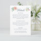 Tarjeta De Recepción Detalles de Boda de Colibrí Floral en Acuarela